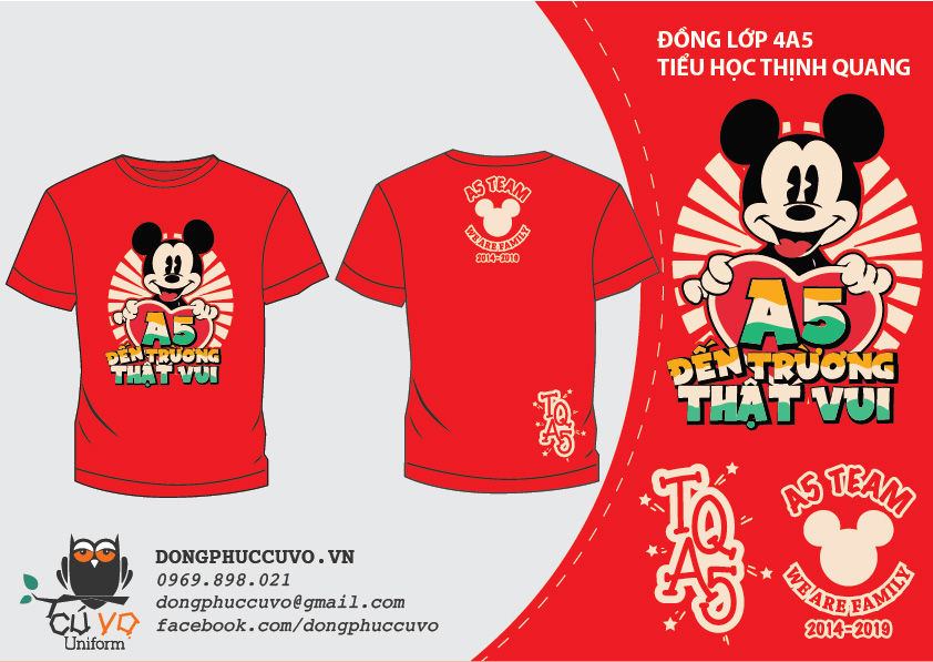 Mẫu thiết kế đồng phục lớp 12 CON GIÁP, tuổi chuột lấy hình ảnh chuột MICKEY làm đại diện.