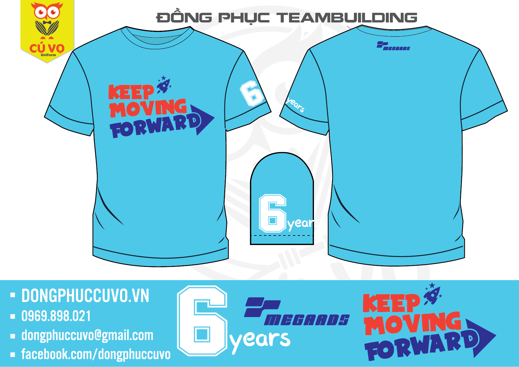 Mẫu áo thun đồng phục teambuilding với slogan "KEEP MOVING FORWARD" dành cho công ty trong các hoạt động ngoài trời.