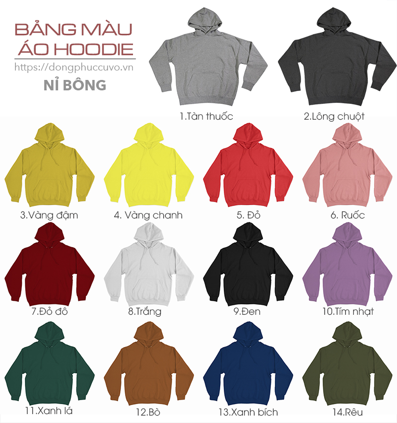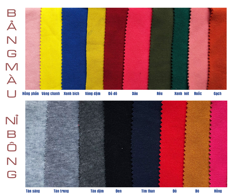 Bảng màu nỉ bông sẵn có tại Cú Vọ Uniform