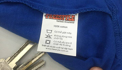 Tem hướng dẫn sử dụng thường được gắn bên trong áo.