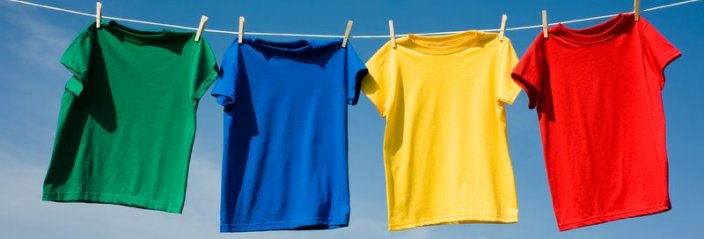 - Hiện nay, đa số các gia đình dùng máy giặt và bột giặt có độ tẩy mạnh, vì vậy trước khi giặt cần phân loại riêng quần áo màu sáng và quần áo màu tối để không bị ảnh hưởng màu khi giặt. Ngoài ra, nên lộn trái quần áo hoặc sử dụng túi giặt để tránh hình in bị chà sát thành máy khiến bong tróc.
