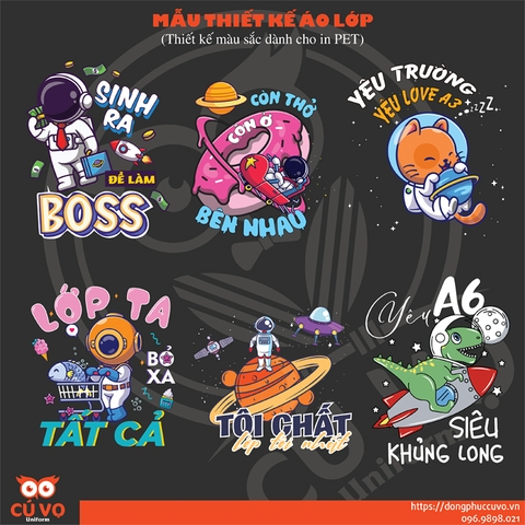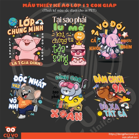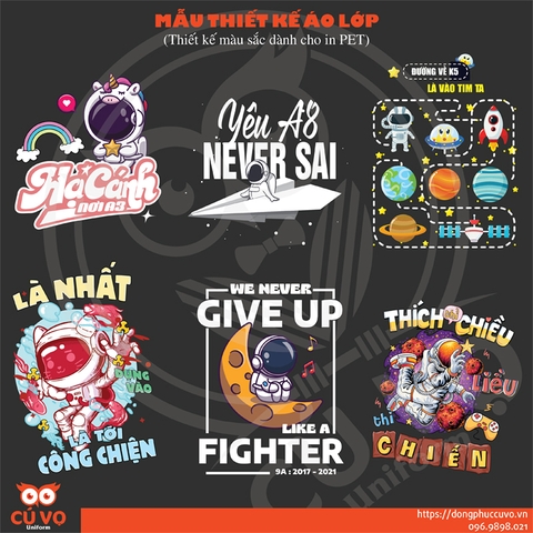 Dưới đây là các mẫu thiết kế đồng phục lớp được ưa chuộng nhất năm học 2023 - 2024 mà Cú Vọ đã tổng kết được. Việc của bạn chỉ cần chọn mẫu in, chọn kiểu áo, màu áo, Cú Vọ Uniform sẽ dựng lên maket theo yêu cầu (đổi tên lớp, đổi slogan, đổi màu nếu thích).